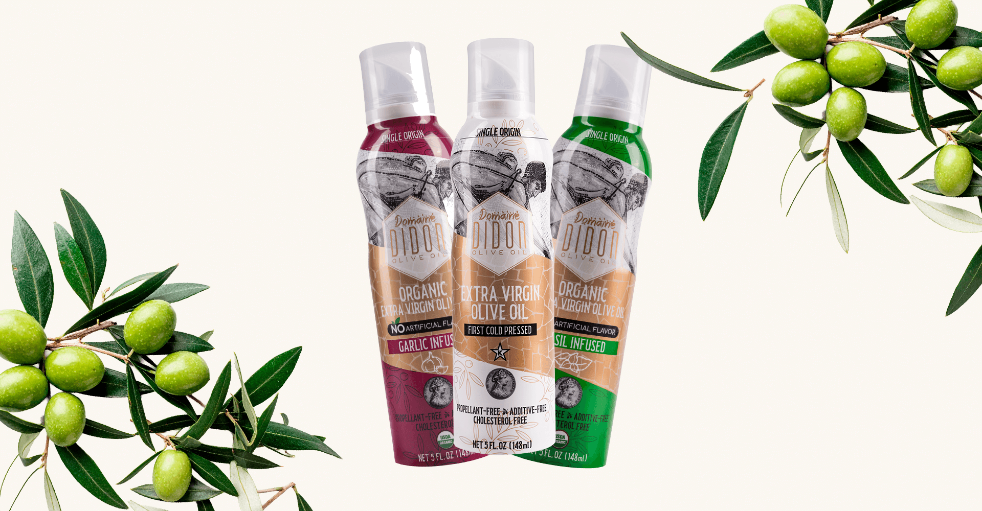 Domaine Didon Organic Extra Virgin Olive Oil Spray – 3-Pack (evoo, Garlic, Basil-Infused)